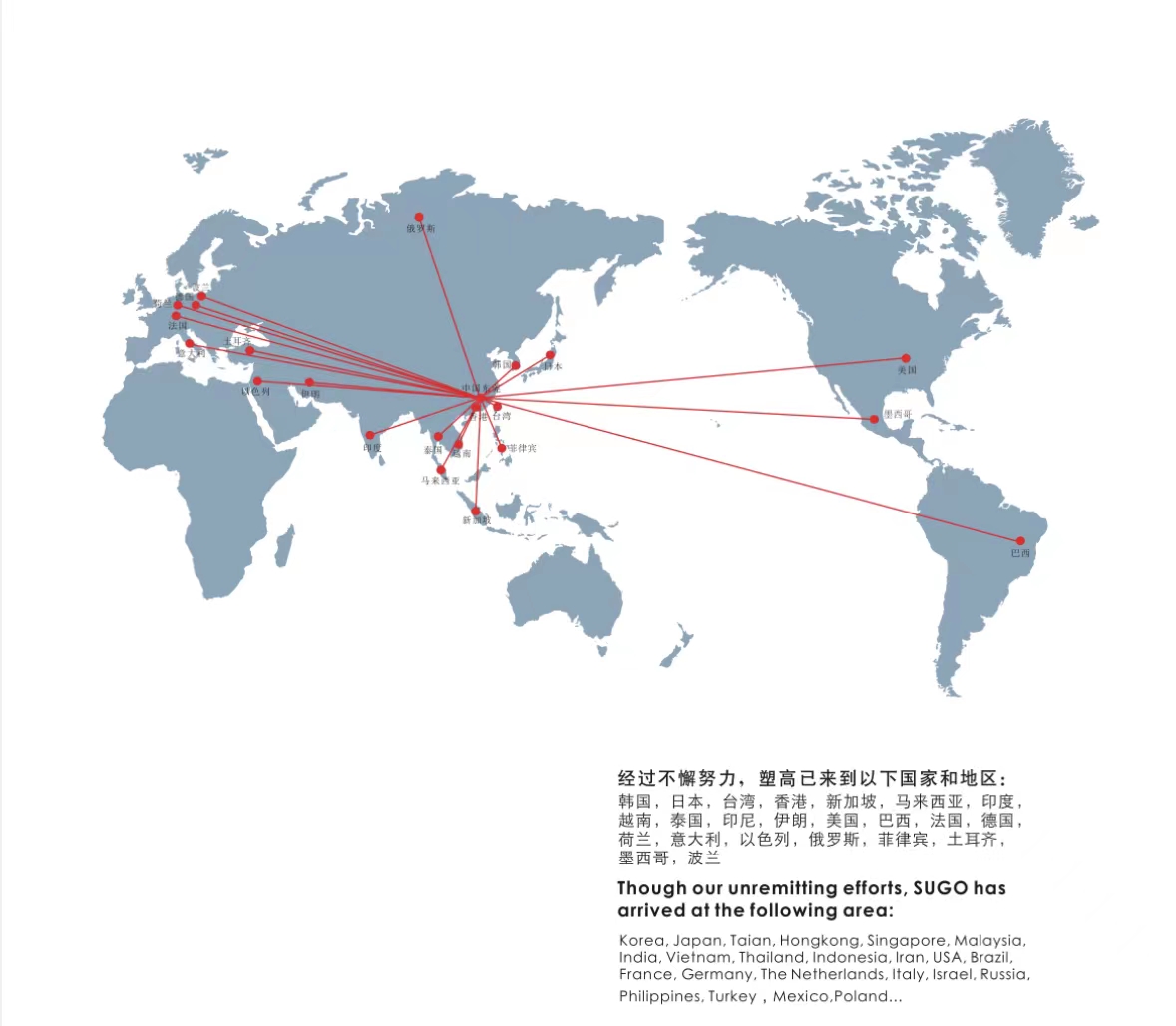世界的每个角落都有我们的客户或我们的产品足迹...